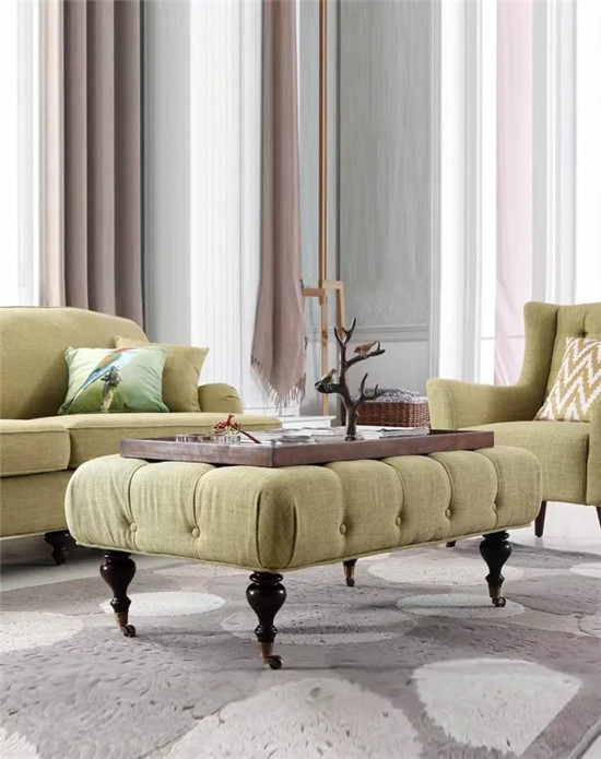 沙发区中的茶几不再是我们常见的原木、亚克力等一系列冷硬的材质,经过布艺软包后的茶几看起来更加具有蓬松感,敦厚的体感增加了给人以温馨的感觉。